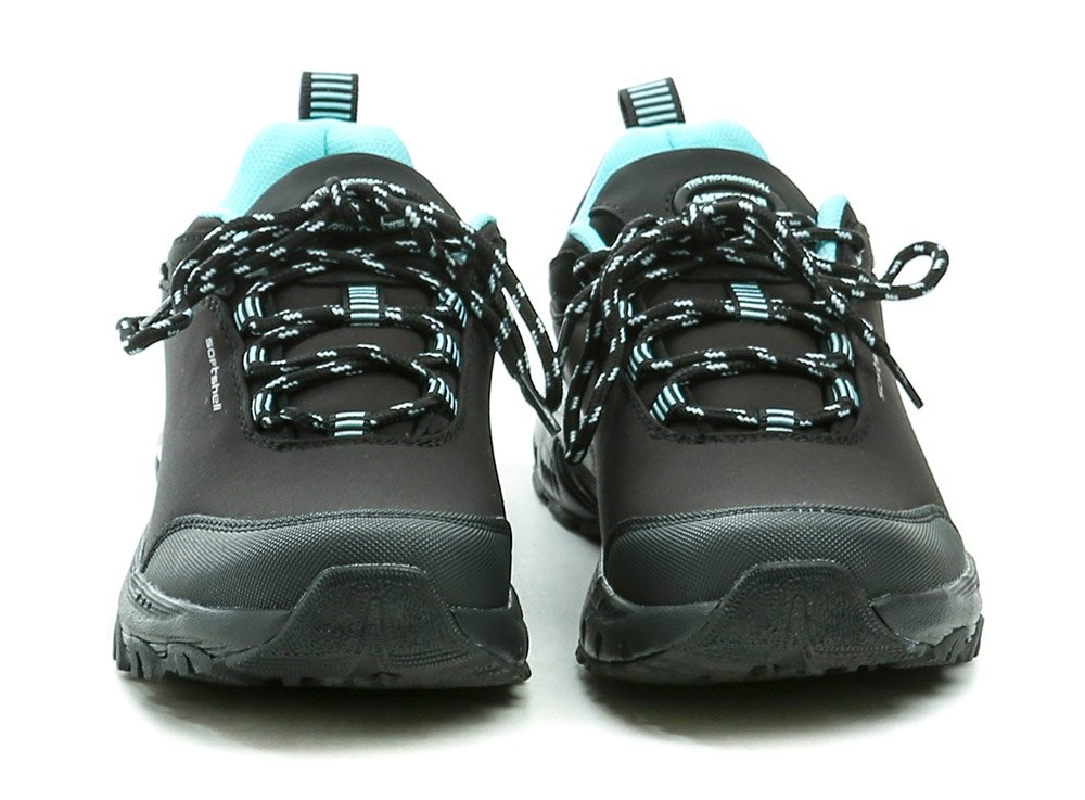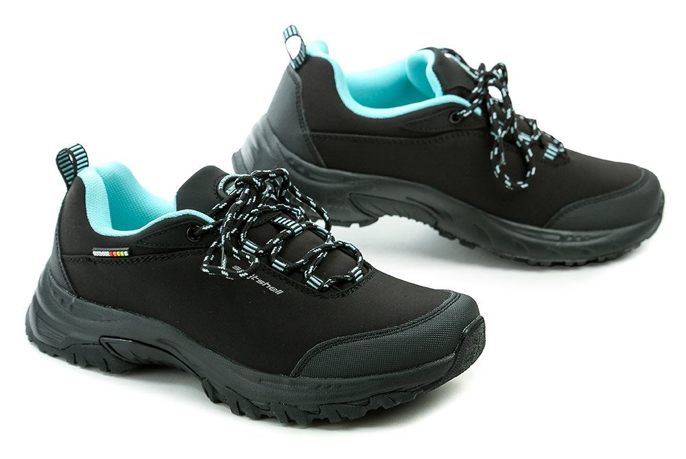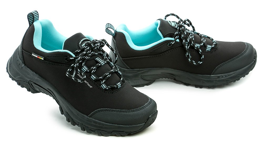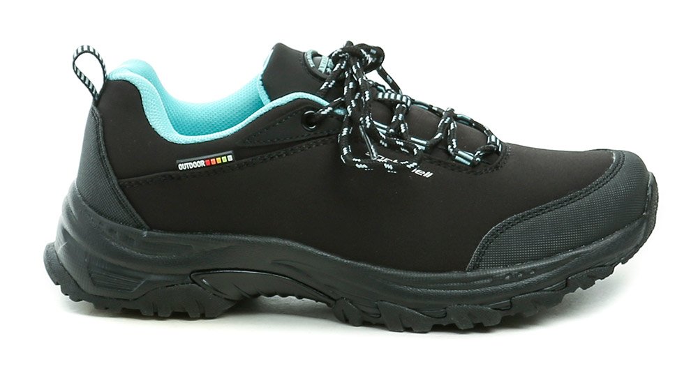 Ganzjährige Outdoor-Wanderschuhe mit Schnürung. Die Schuhe bestehen aus einer Kombination aus synthetischem Material und textilem SOFTSHELL-Material.