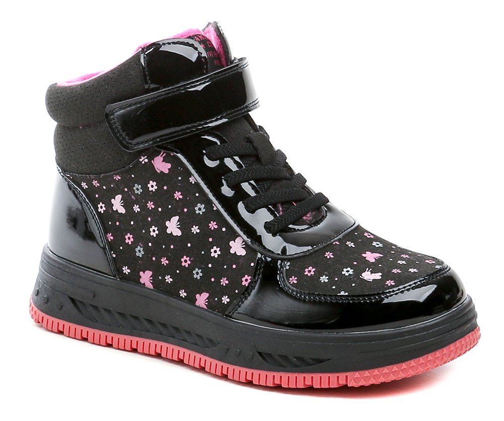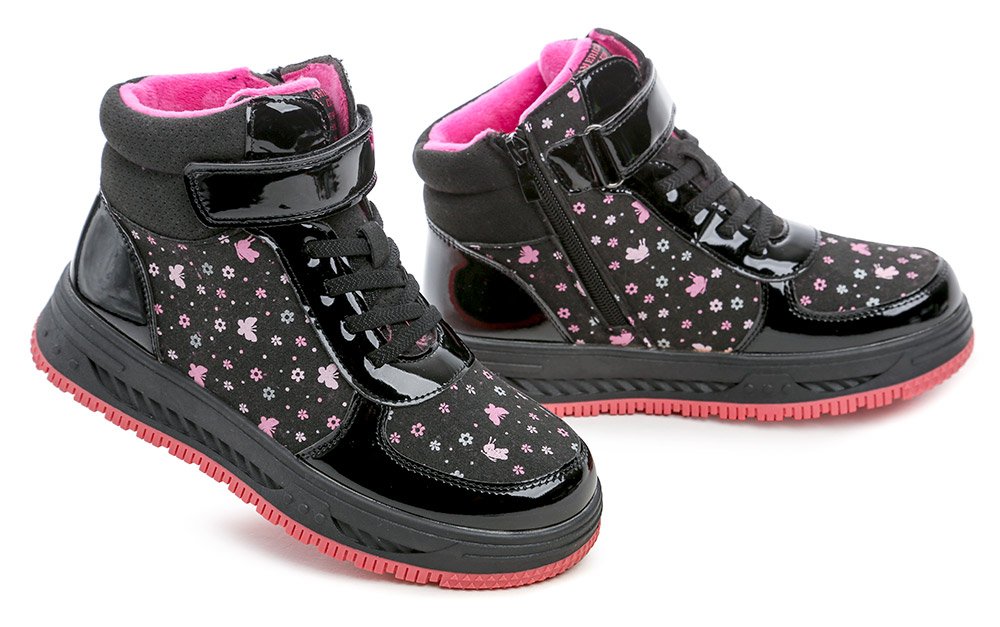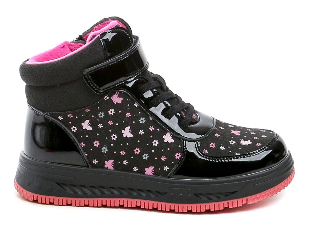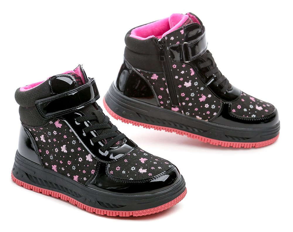 Winterstiefeletten für Kinder mit Reißverschluss. Die Schuhe bestehen aus einer Kombination aus Synthetik- und Textilmaterial und sind mit Schaumstoff gefüttert und mit weichem Wildleder gefüttert.