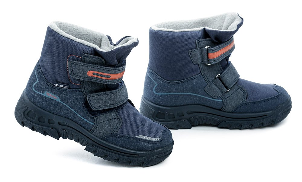 Kinder-Winter-Wanderstiefeletten mit Klettverschluss aus einer Kombination aus Synthetik- und Textilmaterial mit WASSERDICHTER Oberflächenbehandlung.