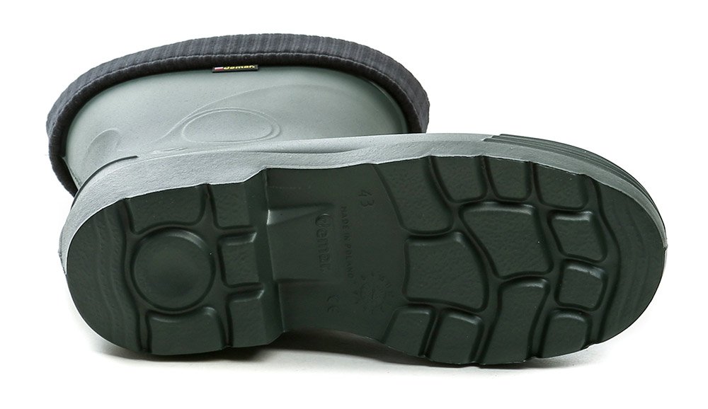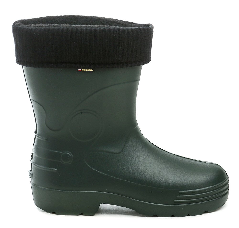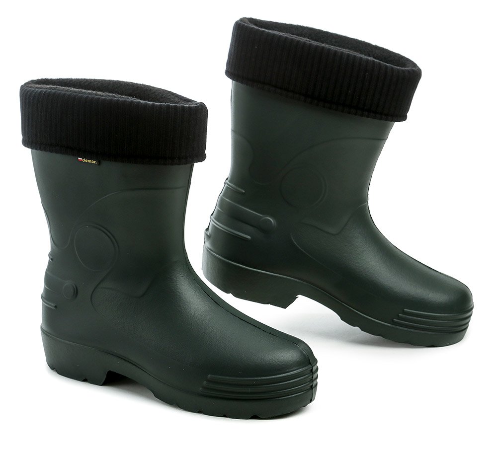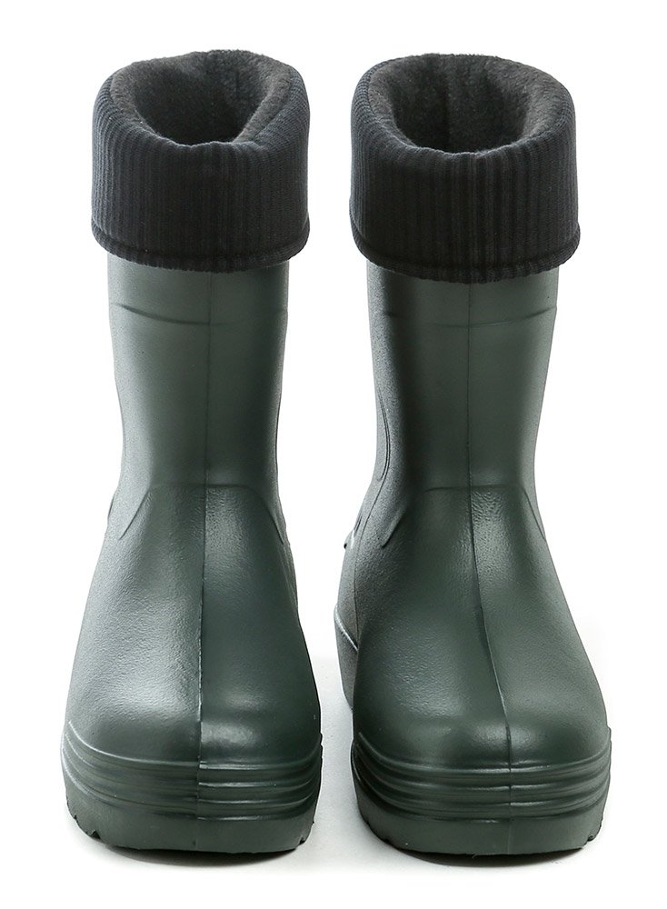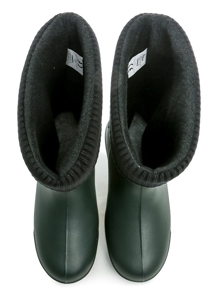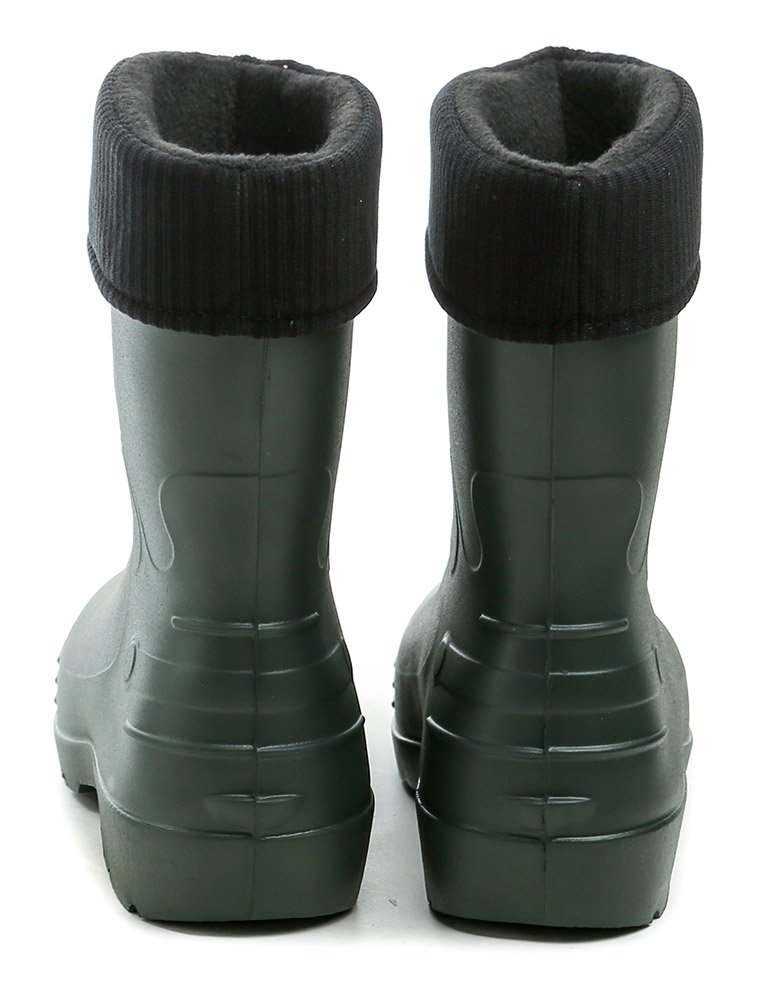 Die Stiefel sind aus wasserdichtem Synthetikmaterial gefertigt. Innen befindet sich eine herausnehmbare, isolierende Synthetik-Einlegesohle. Der Schaftrand ist dekorativ umgeschlagen.