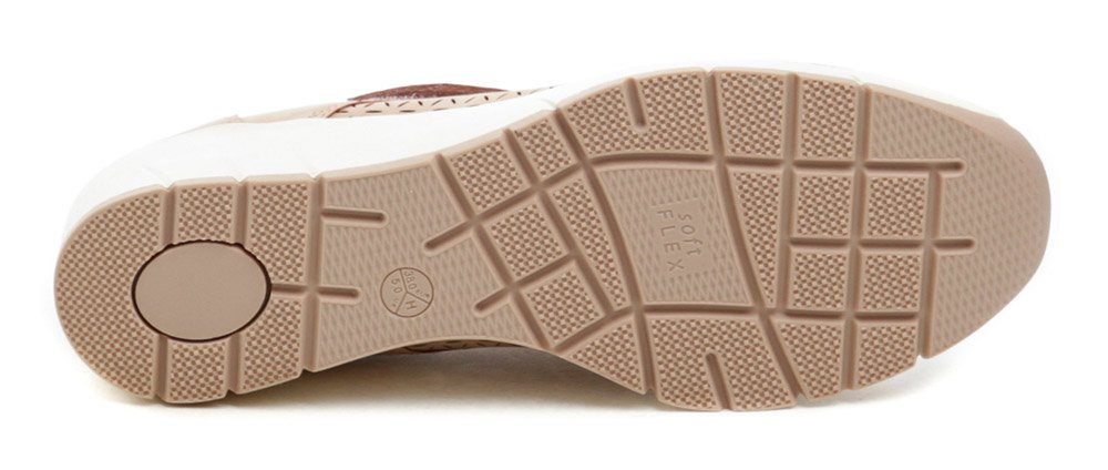 Das Schuhwerk ist aus synthetischem Material hergestellt. Der innere Teil des Schuhs ist mit Textilmaterial ausgestattet. Die Einlegesohle aus Memory Foam ist angenehm zu berühren.