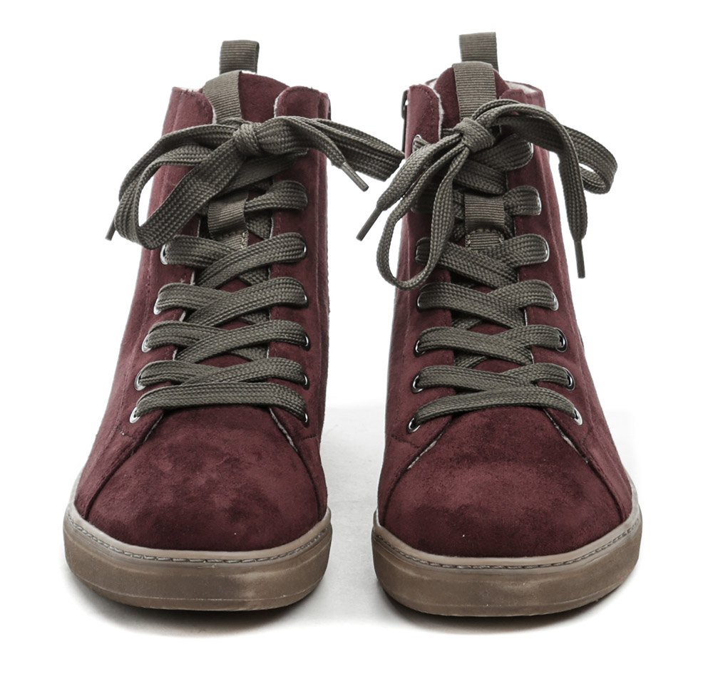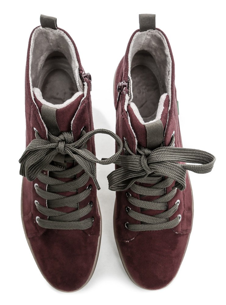 Zusätzliche burgunderfarbene Schnürsenkel sind im Lieferumfang enthalten.