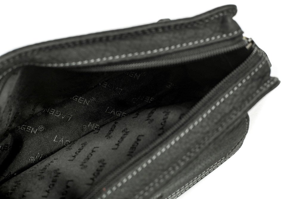 Herren-Geldbörse aus echtem Leder. Die gesamte Geldbörse lässt sich mit einem mittigen Reißverschluss verschließen.