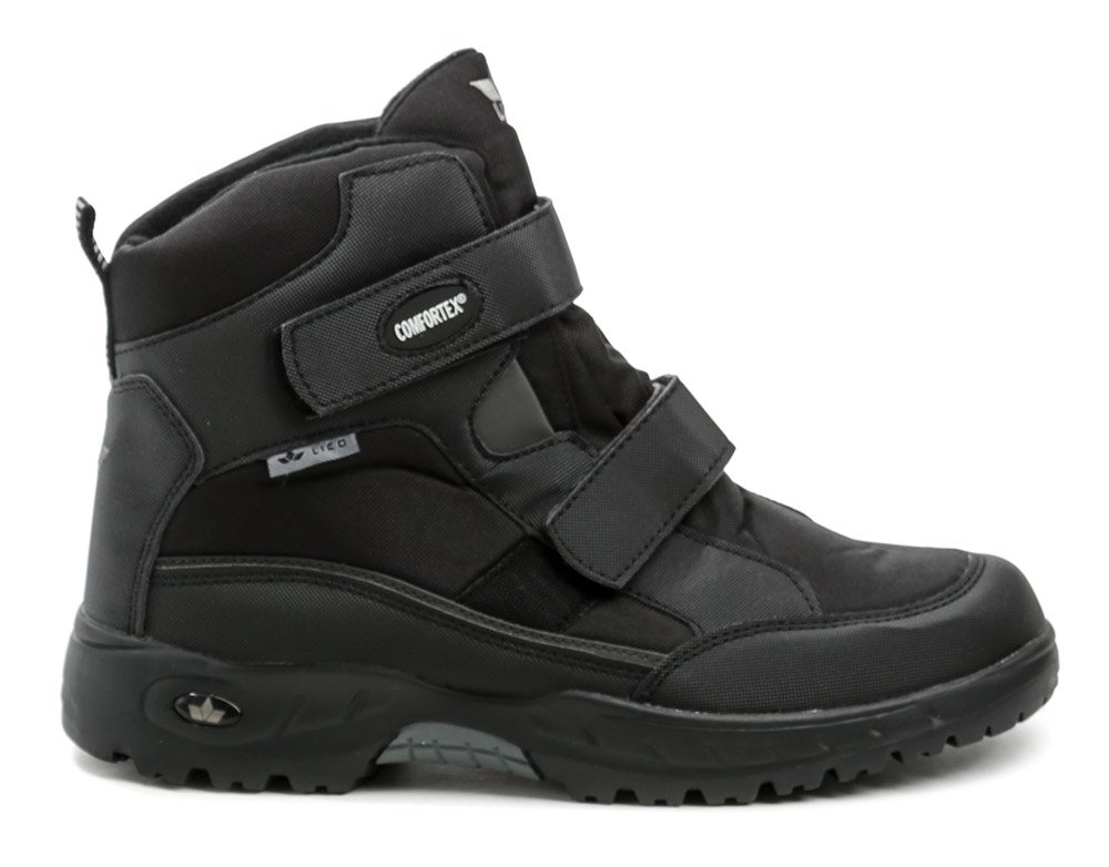 Jungen-Winterwanderstiefel von Lico mit Klettverschluss. Die Schuhe sind aus einer Kombination aus Synthetik und Textilmaterial mit Comfortex®-Membran gefertigt.