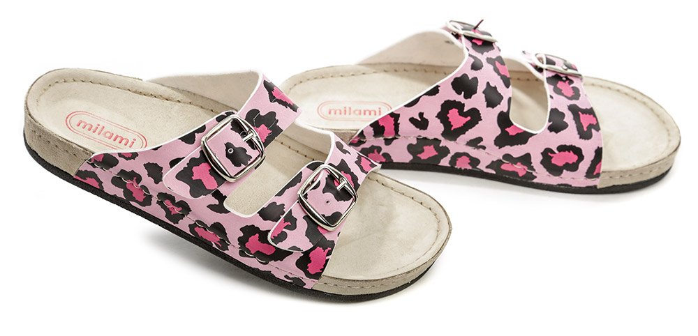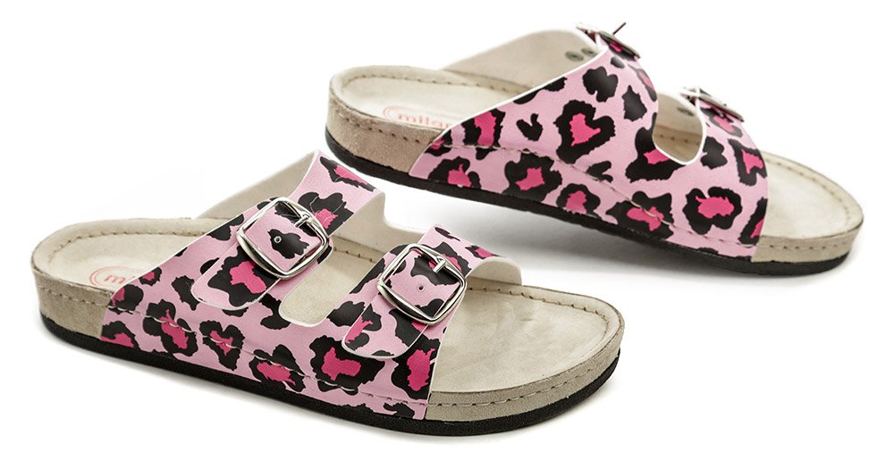 Haus- und Schlupfschuhe für Frauen mit verstellbaren Fesselriemen.
