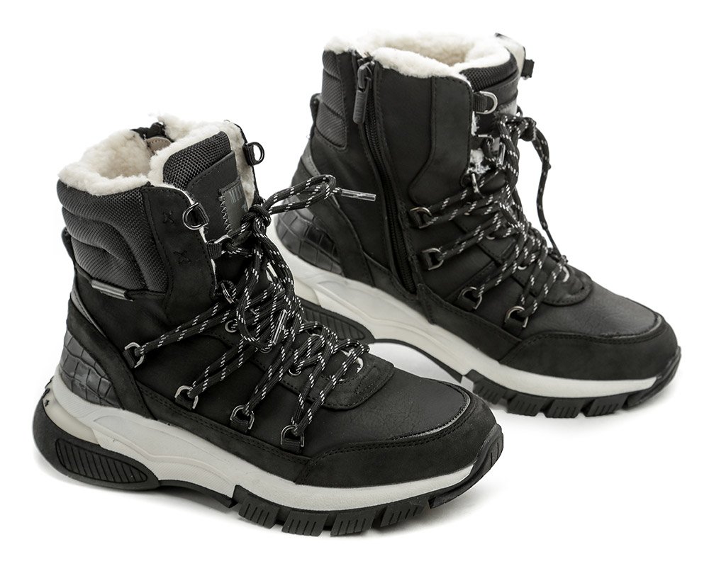 Winterstiefeletten für Damen mit Schnürung und Reißverschluss.