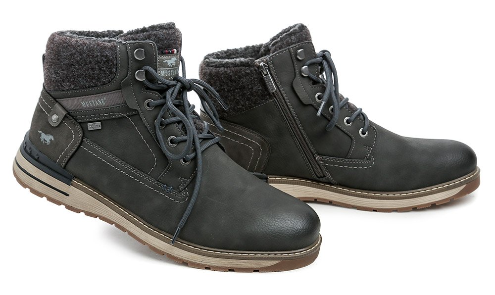 Herren-Winterstiefeletten mit Schnürung und Reißverschluss.