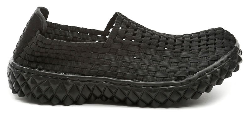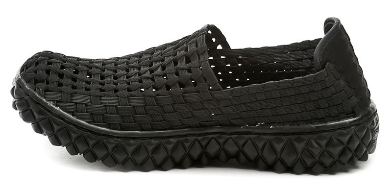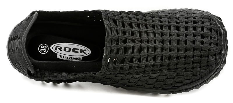 Die originellen Damen-Sommer-Wander- und Freizeit-Gummischuhe Rock Spring aus Textilmaterial, das aus Gummibändern hergestellt ist.