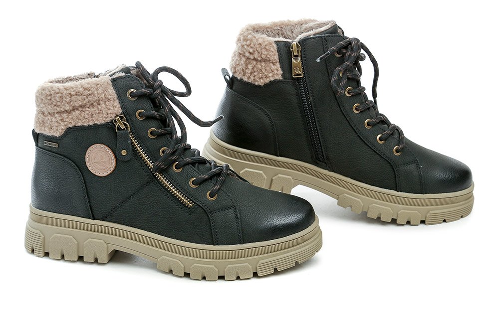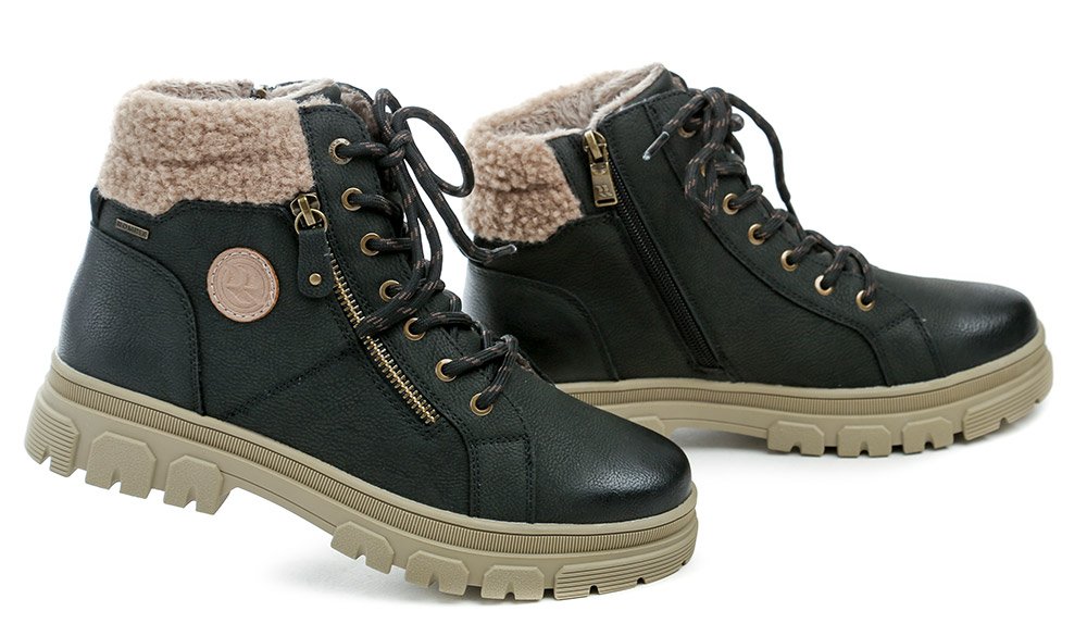 Winterstiefel mit Schnürsenkeln und Reißverschluss.