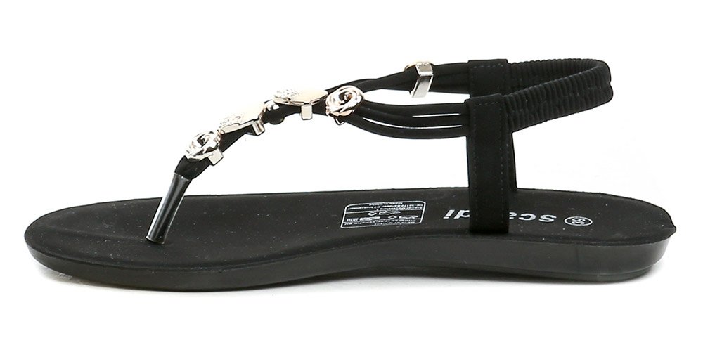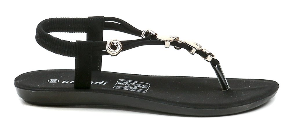 Sommerliche Damensandalen mit abnehmbarem elastischem Fersenriemen.