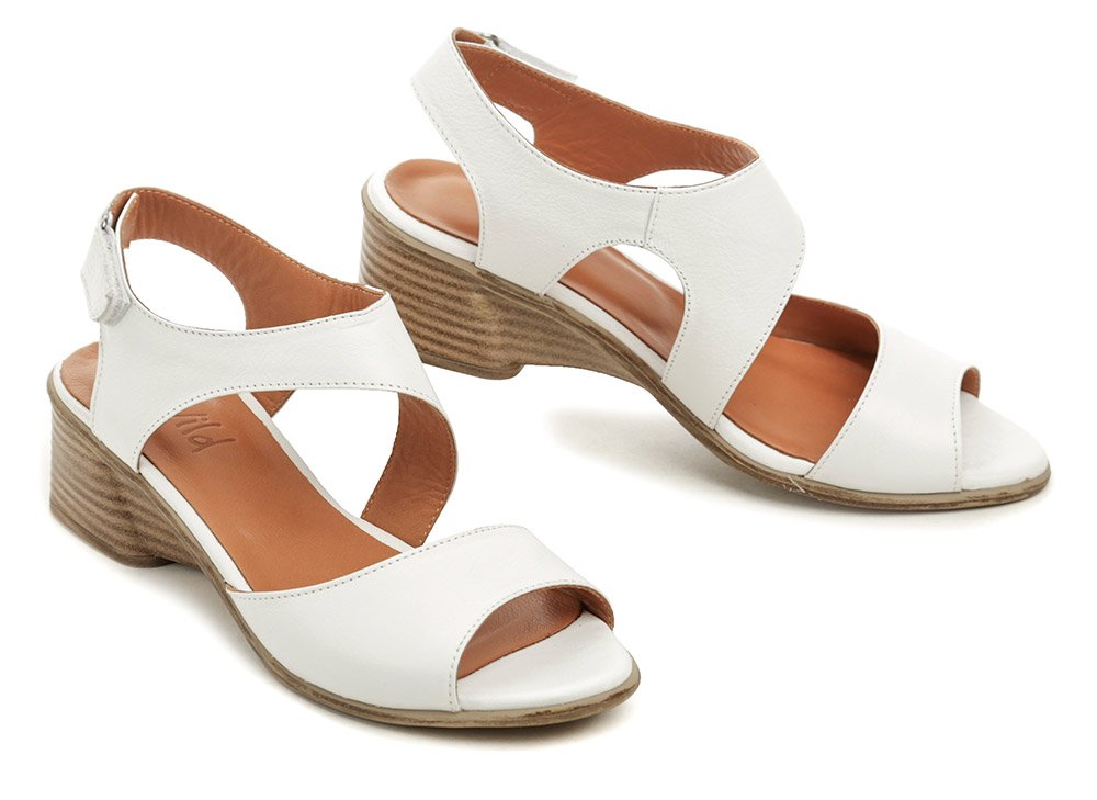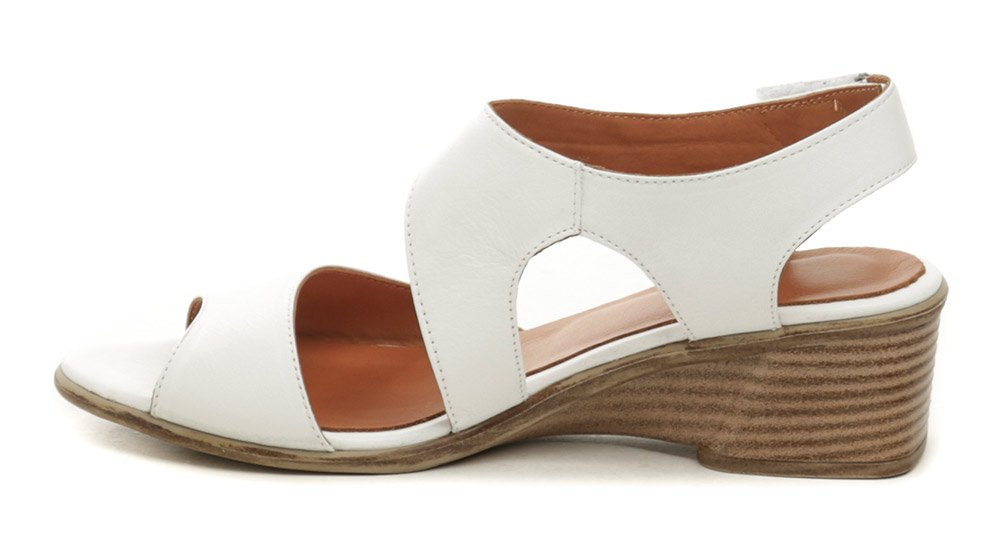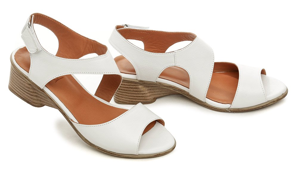 Sommerliche Damen-Walking-Schuhe mit loser Spitze auf einem niedrigen Keil mit einem Riemenverschluss um die Ferse.