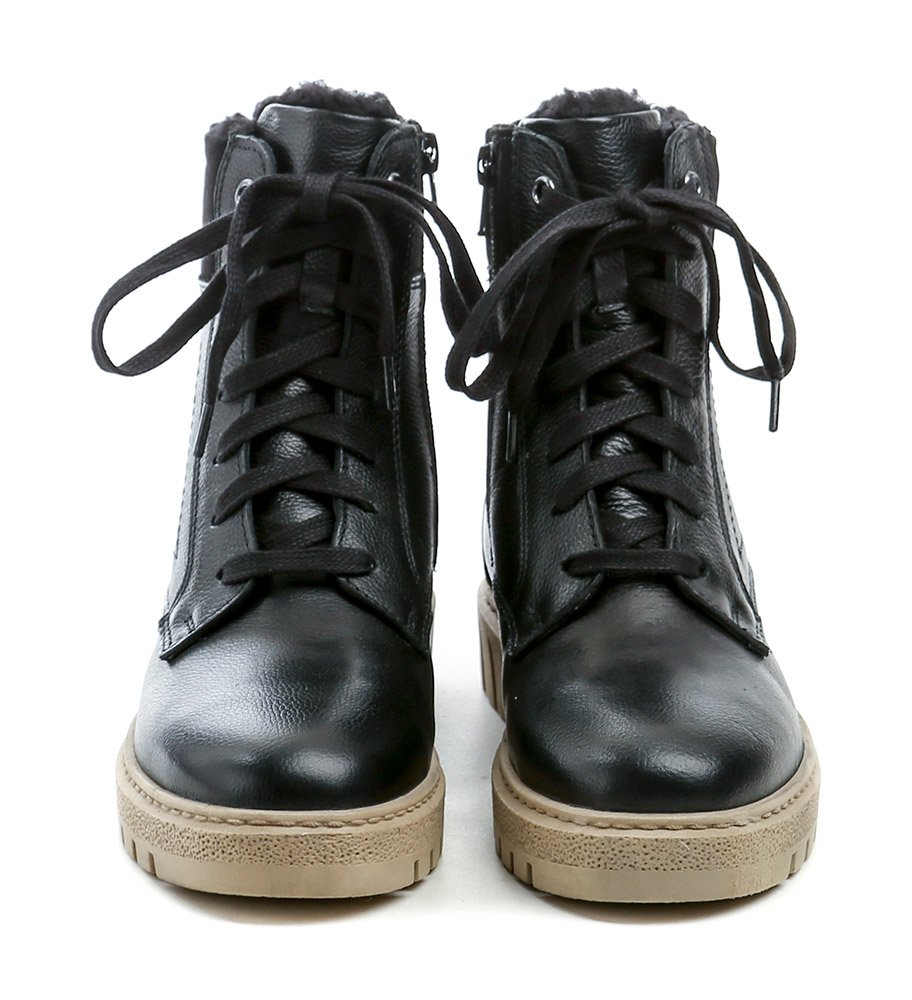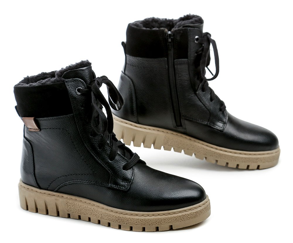 Die Schuhe sind aus echtem Naturleder gefertigt. Die Innenseite ist mit flauschigem Textilfell ausgestattet.