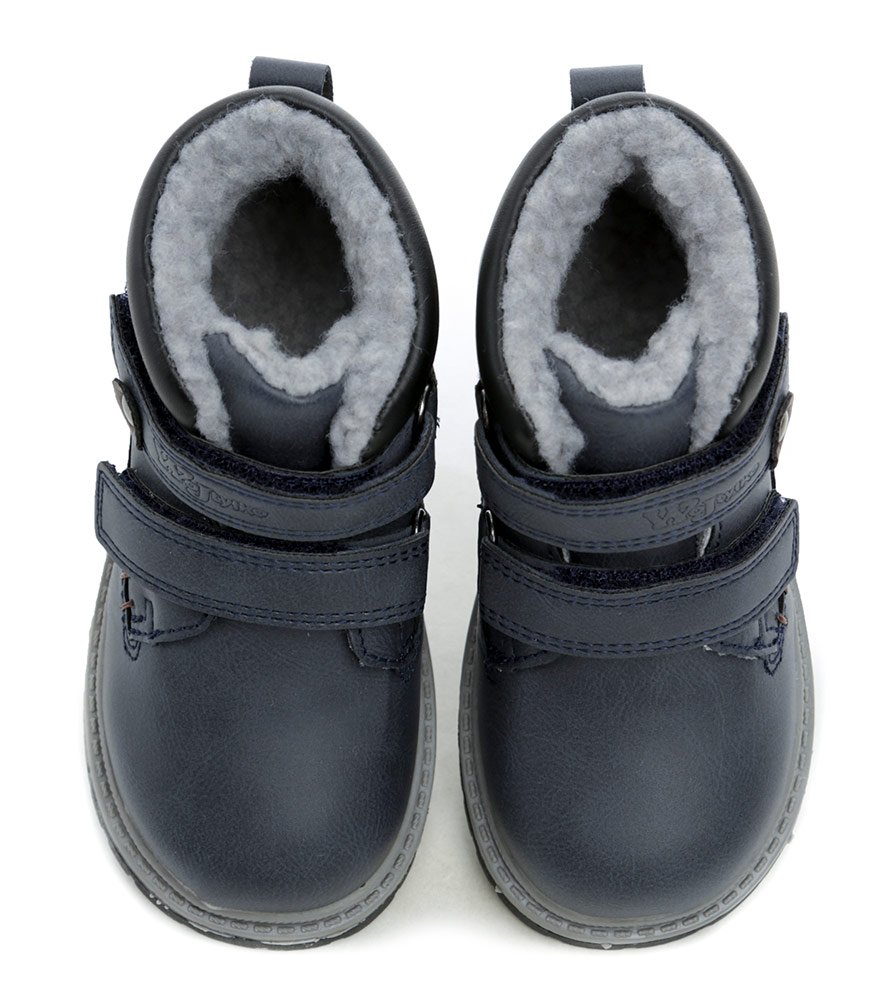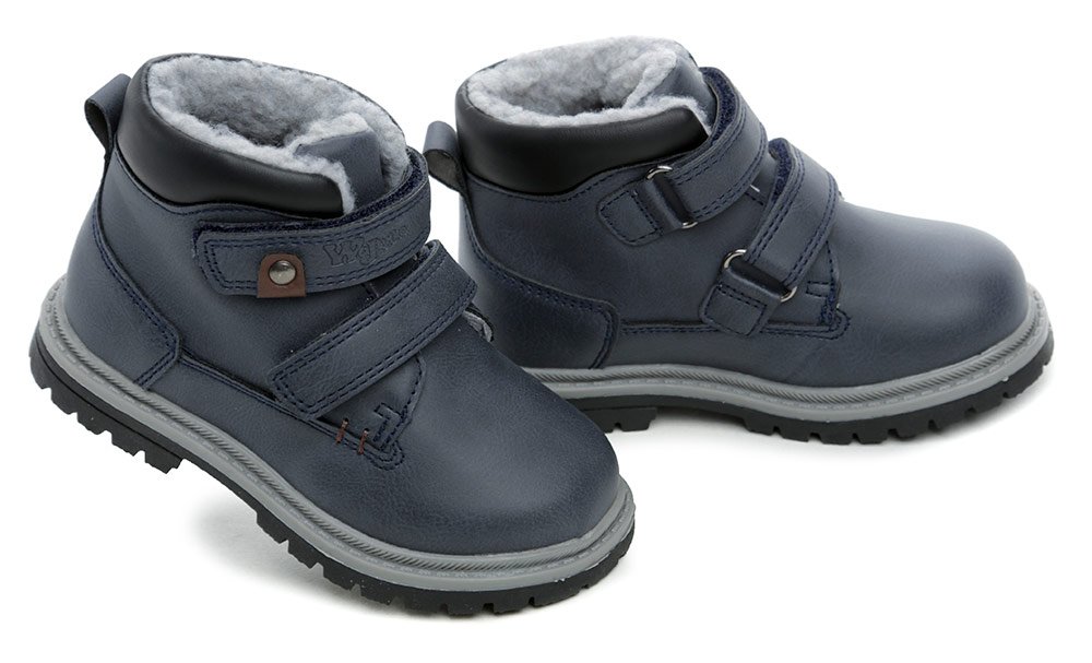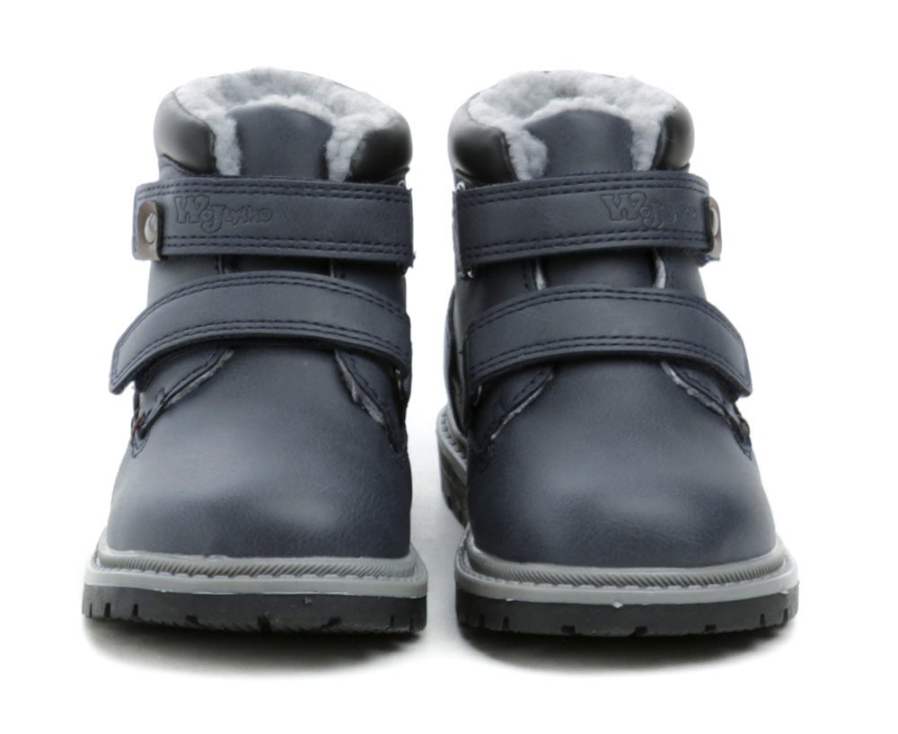 Kinder-Winterwanderstiefel mit Klettverschluss.