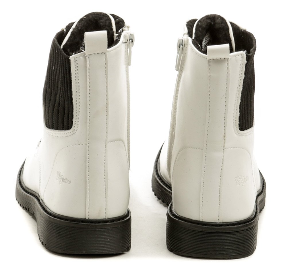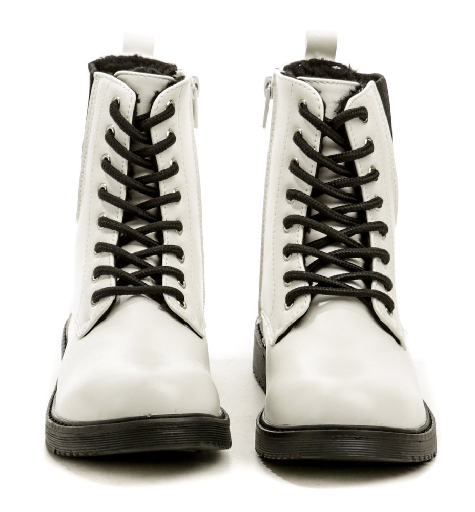 Die Schuhe sind aus synthetischem Material hergestellt. Der innere Teil des Schuhs ist mit einem pelzigen Textilfell ausgestattet.