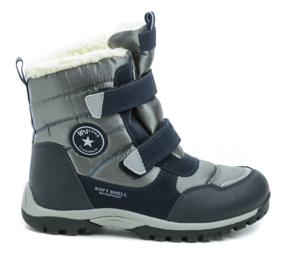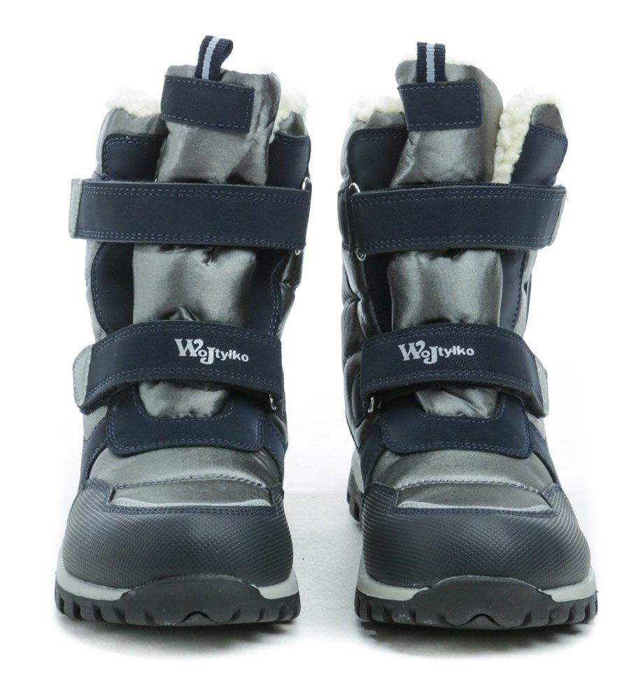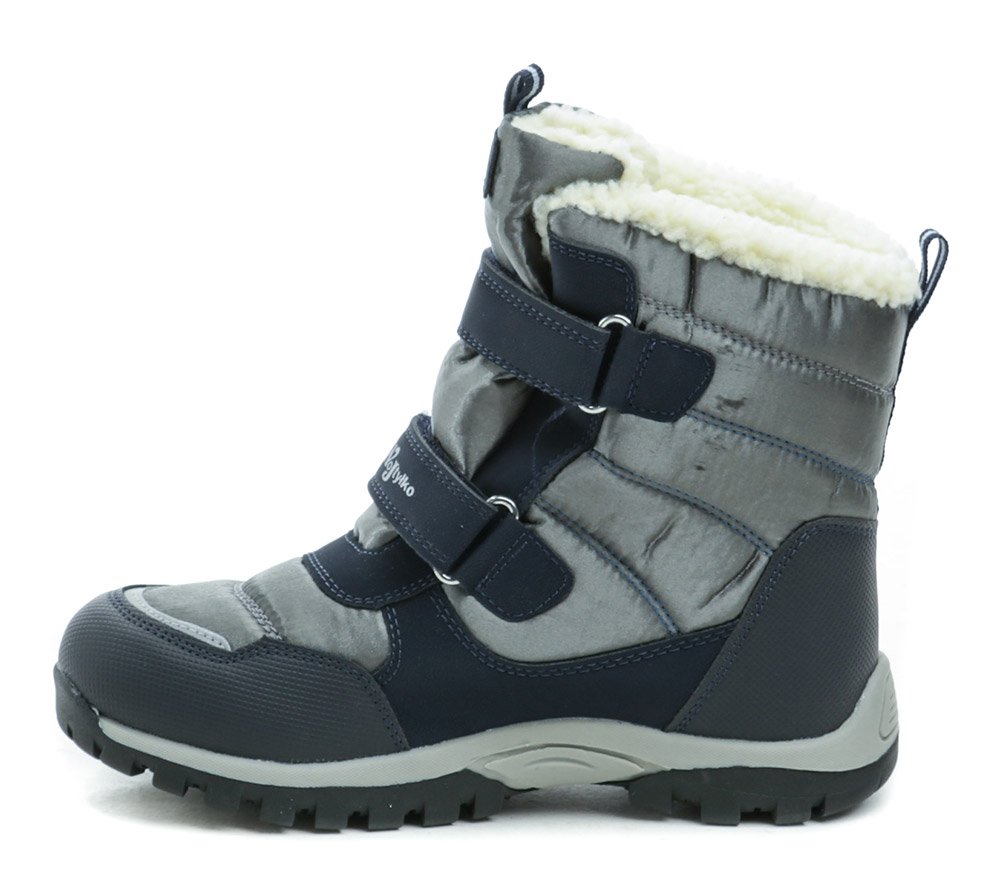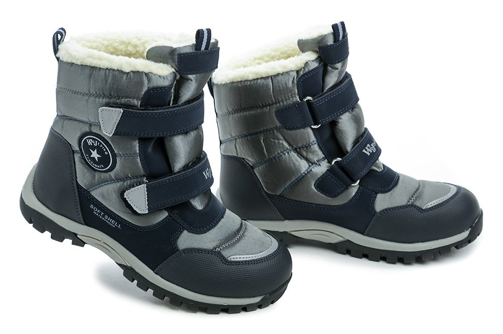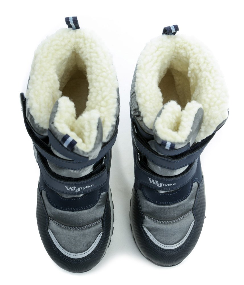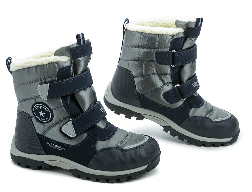 Kinder-Winterwanderstiefel mit Klettverschluss.