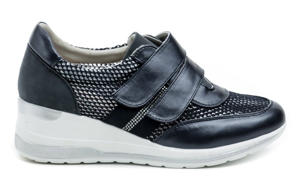 Das Schuhwerk ist aus Kunstleder in Kombination mit Textil gefertigt. Der Innenbereich des Schuhs hat ein Futter und eine gepolsterte Innensohle aus echtem Naturleder.